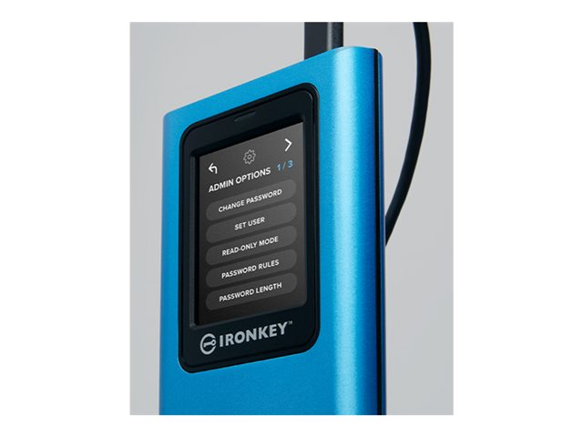 | Features | Sikker slettefunksjon, Master and User Dual Passwords, fargeberøringsskjerm, Skrivebeskyttet (skrivebeskyttelse) - Dobbelmodus, BadUSB angrepsbeskyttelse, konfigurerbare passordregler, PIN/Passphrase-moduser, Brute-Force Password Attack Protection, automatisk lås |