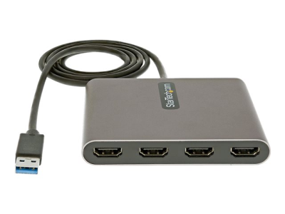 This USB 3.0 to HDMI adapter lets you extend your desktop by adding four independent HDMI monitors or displays to your laptop or desktop computer using a single USB Type-A port.