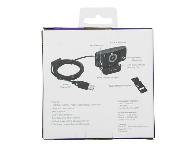 Targus Webcam Plus - Nettkamera - farge - 2 MP - 1920 x 1080 - 1080p - lyd - USB 2.0 - MJPEG, H.264, H.265 AVC042GL