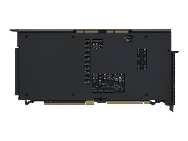 For maksimal grafikk i arbeidsstasjonklassen og krevende proffapper kan du velge Radeon Pro W6900X MPX-modulen med 32 GB GDDR6-minne som gir opptil 512 GBps minnebåndbredde. Du kan installere opptil to i Mac Pro med Infinity Fabric Link, slik at du får ytelsen fra to grafikkort til bruk i apper som Final Cut Pro. Dette grafikkalternativet har også databehandling på opptil 22,2 teraflops med enkel presisjon, eller 44,4 teraflops med halv presisjon. Den støtter opptil seks 4K-skjermer, tre 5K-skjermer eller tre Pro Display XDR-skjermer. Og MPX-modulen i full høyde fyller én MPX-skuff og bruker ekstra kraft og PCIe-båndbredde, slik at du får fire ekstra Thunderbolt 3-porter og én HDMI 2.0-port på kortet.