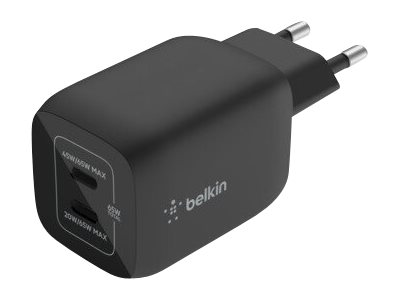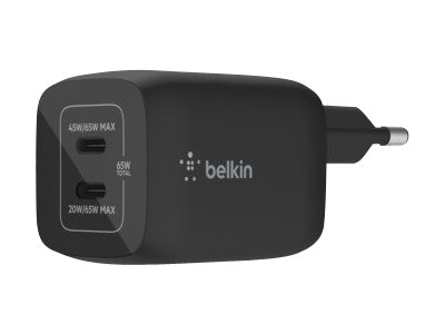 Belkin BoostCharge Pro - Strømadapter - PPS-teknologi - 65 watt - 3.25 A - PD 3.0, Fast Charge - 2 utgangskontakter (USB-C) - svart WCH013VFBK