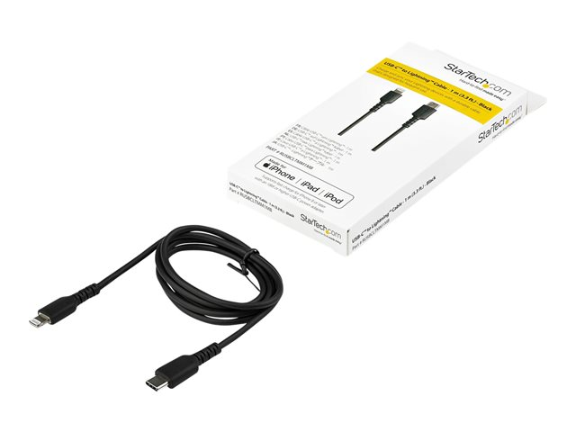 StarTech.com 3 ft(1m) Durable Black USB-C to Lightning Cable, Heavy Duty Rugged Aramid Fiber USB Type C to Lightning Charger/Sync Power Cord, Apple MFi Certified iPad/iPhone 12 Pro Max - iPhone 7/8/11/11 Pro - Lightning-kabel - Lightning hann til USB-C hann - 1 m - svart