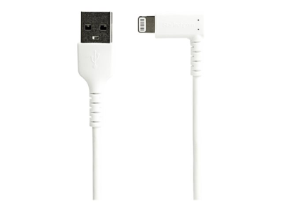 StarTech.com 3ft (1m) Durable USB A to Lightning Cable, White 90° Right Angled Heavy Duty Rugged Aramid Fiber USB Type A to Lightning Charging/Sync Cord, Apple MFi Certified, iPhone 12 Pro - iPhone 7/8/11/11 Pro - Lightning-kabel - Lightning hann vinklet til USB hann - 1 m - dobbeltisolert - hvit