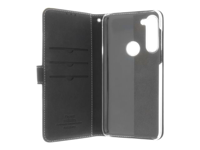 Insmat Exclusive Flip Case - Lommebok for mobiltelefon - ekte skinn, polyuretan, polykarbonat - svart - for Motorola Moto G8 Power 650-2862