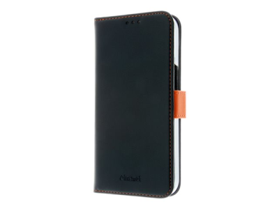 Insmat Exclusive - Lommebok for mobiltelefon - ekte skinn, polykarbonat, kartong+papir+aluminiumsfolie - svart, oransje - for Apple iPhone 15 Pro