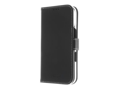Insmat Exclusive - Lommebok for mobiltelefon - ekte skinn, kartong+papir+aluminiumsfolie, polykarbonat (PC), bomullssting - svart - for Apple iPhone 16 Plus