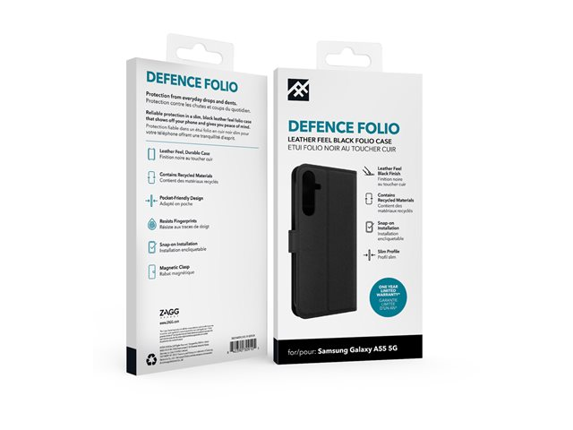 iFrogz Defence - Beskyttelsesboks lommebok for mobiltelefon - lær - svart - for Samsung Galaxy A55