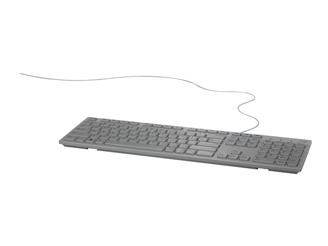 Det kablede Dell-tastaturet er praktisk for daglig bruk hjemme eller på kontoret. Tastaturet har chiclet-taster som er effektive og komfortable å skrive på - velegnet for så å si alle oppgaver. Dell-multimedietastatur er robust og med fleksible materialer og er også motstandsdyktig mot søl.