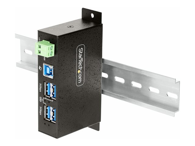StarTech.com 4-Port Managed USB Hub with 4x USB-A, Heavy Duty with Metal Industrial Housing, ESD & Surge Protection, Wall/Desk/Din-Rail Mountable, USB 3.0/3.1/3.2 Gen 1 5Gbps - Hub - 3 x USB 3.2 Gen 2 + 1 x USB 3.2 Gen 1 - veggmonterbar, stasjonær, DIN-skinnemonterbar - TAA-samsvar