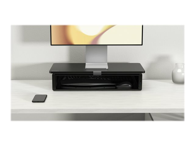 When used as directed, the UVStand Monitor Stand with UVC sanitization compartment safely and easily helps to sanitize keyboards, mice, trackballs, mobile phones and other devices, while promoting healthy posture and optimal comfort. The spacious sanitization compartment accepts most full-sized keyboards and can be used to store desktop items when not sanitizing, freeing up desktop space. The fully-contained UVC LEDs safely sanitize, eliminating up to 99.9% of bacteria and viruses on any exposed surface within 10 minutes, without the use of chemicals, liquids or wipes. Supports monitors up to 18kg (40lbs) and can also be used as a laptop stand, raising the laptop to optimal eye level.