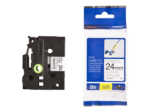 Brother TZe-FX251 - Adhesiv - svart på hvitt - Rull (2,4 cm x 8 m) 1 kassett(er) hengeboks - fleksibel ID-tape - for Brother PT-D600, P750, P950; P-Touch PT-2430, 3600, 9800, D800, E500, E550, P750, P900