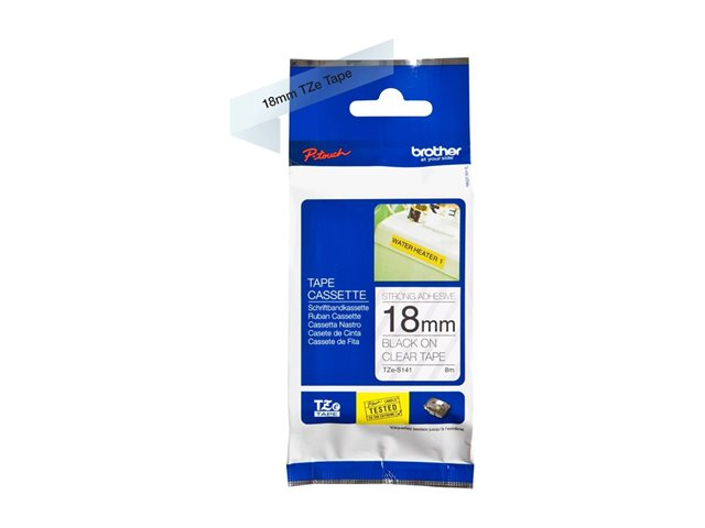 Brother TZe-S141 - Ekstra sterk adhesiv - svart på blank - Rull (1,8 cm x 8 m) 1 kassett(er) laminert teip - for Brother P-Touch Cube PT-P910BT; P-Touch Cube Plus PT-P710BT, PT-P710BTH; P-Touch Cube Pro PT-P910BT; P-Touch EDGE PT-P750WVP and P-Touch models.
