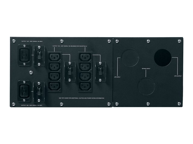 APC Service Bypass Panel - Omløpssvitsj (kan monteres i rack) - AC 230 V - utgangskontakter: 10 - svart - for P/N: SRT10KRMXLI, SRT10KXLI, SRT6KRMXLI-6W, SRT8KRMXLI, SRT8KXLI, SURT20KUXI-IN
