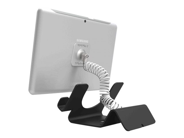 Universal Tablet Security Holder - Universal Tablet Security Stand - Secures all Tablets! The new Tablet Security Stand is compatible with all the leading tablets (7 inches or more) from the top brands. Its wide compatibility range makes it the ideal fit for any display setting whether it's a retail store, corporate office, school lab, VIP lounge or even as an addition to your personal home entertainment system. A simple design with unique security features distinguish it from the cluttered pack of tablet stands on the market. Positioned at a 45 degree angle for optimal viewing with an open back design to fit the locking point and security cable. The stand has a balance stabilizer that serves as a cable trap to keep your cords in order and from being stolen.