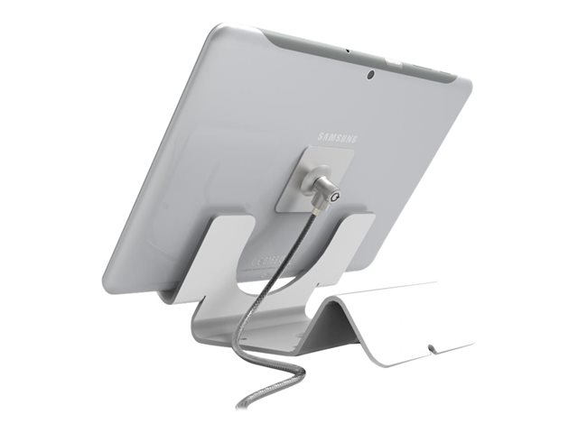 Universal Tablet Security Holder - Universal Tablet Security Stand - Secures all Tablets! The new Tablet Security Stand is compatible with all the leading tablets (7 inches or more) from the top brands. Its wide compatibility range makes it the ideal fit for any display setting whether it's a retail store, corporate office, school lab, VIP lounge or even as an addition to your personal home entertainment system. A simple design with unique security features distinguish it from the cluttered pack of tablet stands on the market. Positioned at a 45 degree angle for optimal viewing with an open back design to fit the locking point and security cable. The stand has a balance stabilizer that serves as a cable trap to keep your cords in order and from being stolen.