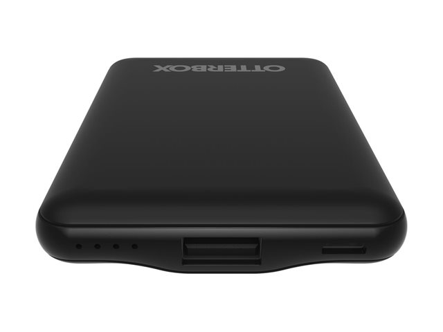 OtterBox Standard Mobile Charging Kit - Strømbank - 5000 mAh - 10.5 watt - 2.1 A - Apple Fast Charge, FC, USB BC 1.2 (USB) - på kabel: Lightning/Micro-USB/USB-C - svart