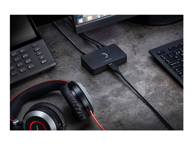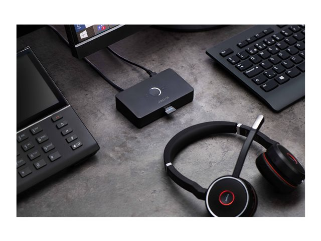 The Jabra LINK 950 helps boost productivity by enabling you to use a USB headset, either with just the desk phone or with a desk phone and softphone.